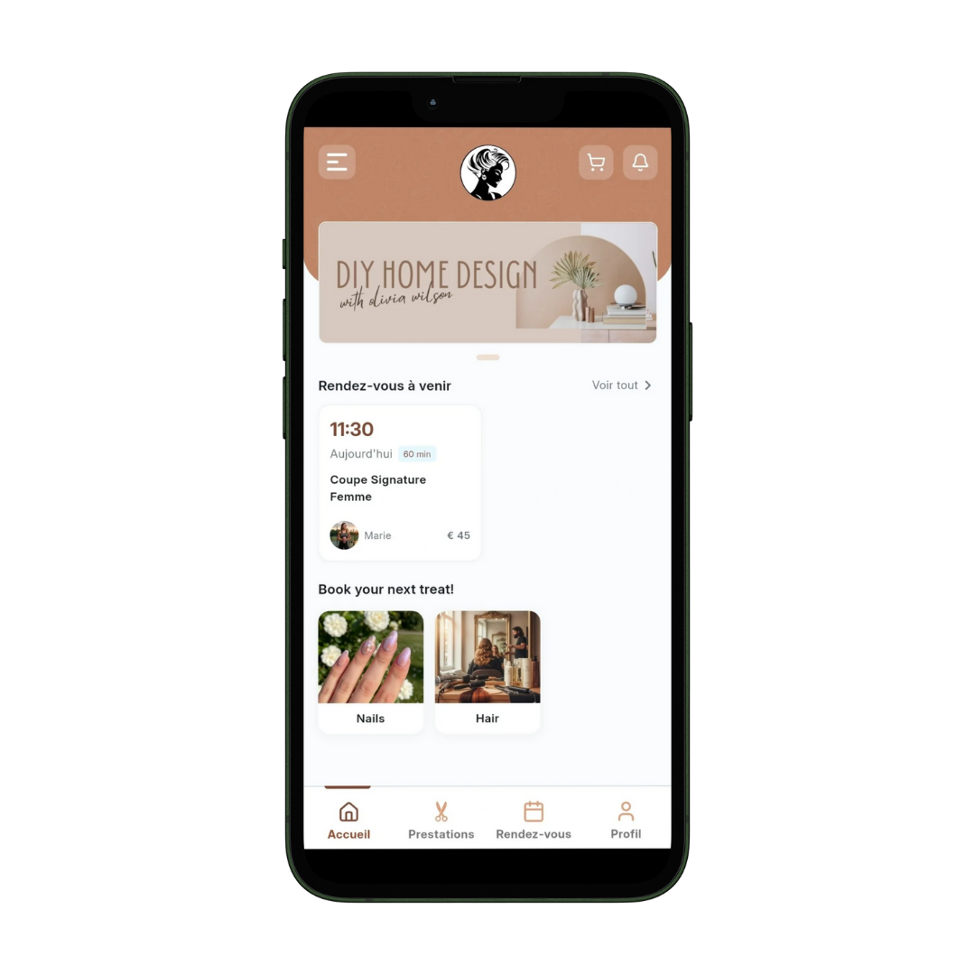 Votre propre URL (reservations.votresalon.fr) pour une cohérence totale.